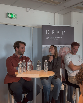 Le lundi 3 novembre 2025, sur le campus de l'EFAP Bordeaux, les étudiants de 2e et 4e années ont assisté à une table ronde où ils ont pu découvrir les parcours de trois alumni et échanger avec eux :